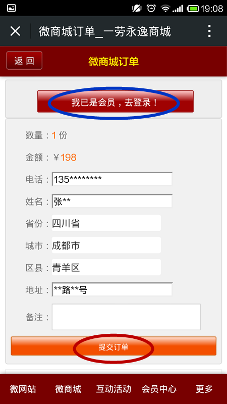第三步:如果您已经是会员,请点击“我已是会员,去登陆”;如果您不是会员,请填写完信息后点击“提交订单”