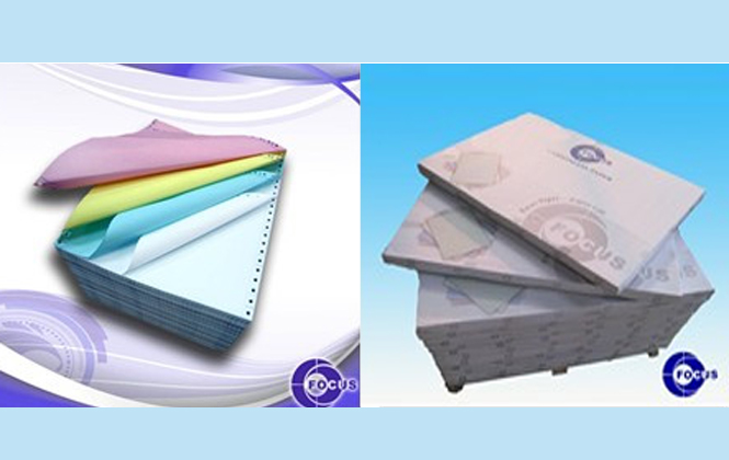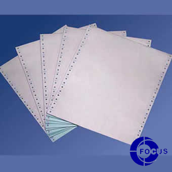 Continuous forms (unprinted & printed) 多联打孔纸Paper: Carbonless paperPulp: 100% virgin wood pulpImage (print): Black & blueTinted: white, green, pink, yellow, blueSize: Width (mm): 241x279, 241x381 or per request Packaging: 1500-3500 sheets/box or per request主要特征:1. 原材料:100%纯木浆2. 显色:黑显和蓝显3. 颜色:白,粉,黄,蓝,绿4. 常规克重:CB/CFB/CF 55/50/55gsm5. 尺寸:9.5”x11”等